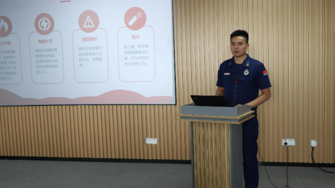 緊接著,紹興市濱海新區(qū)大隊袍中路消防救援站婁銀偉為大家?guī)砹艘粓鰧I(yè)的消防安全防火培訓(xùn)。婁消防員從火災(zāi)的成因、預(yù)防措施、逃生技巧等方面進行了全面講解,并結(jié)合實際案例,讓大家深刻認識到火災(zāi)的危害性和防火工作的重要性。他還現(xiàn)場演示了消防器材的使用方法,讓大家對消防設(shè)施有了更直觀的認識。